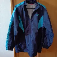フリース素材のネイビージャケット、ジッパーポケット付き。