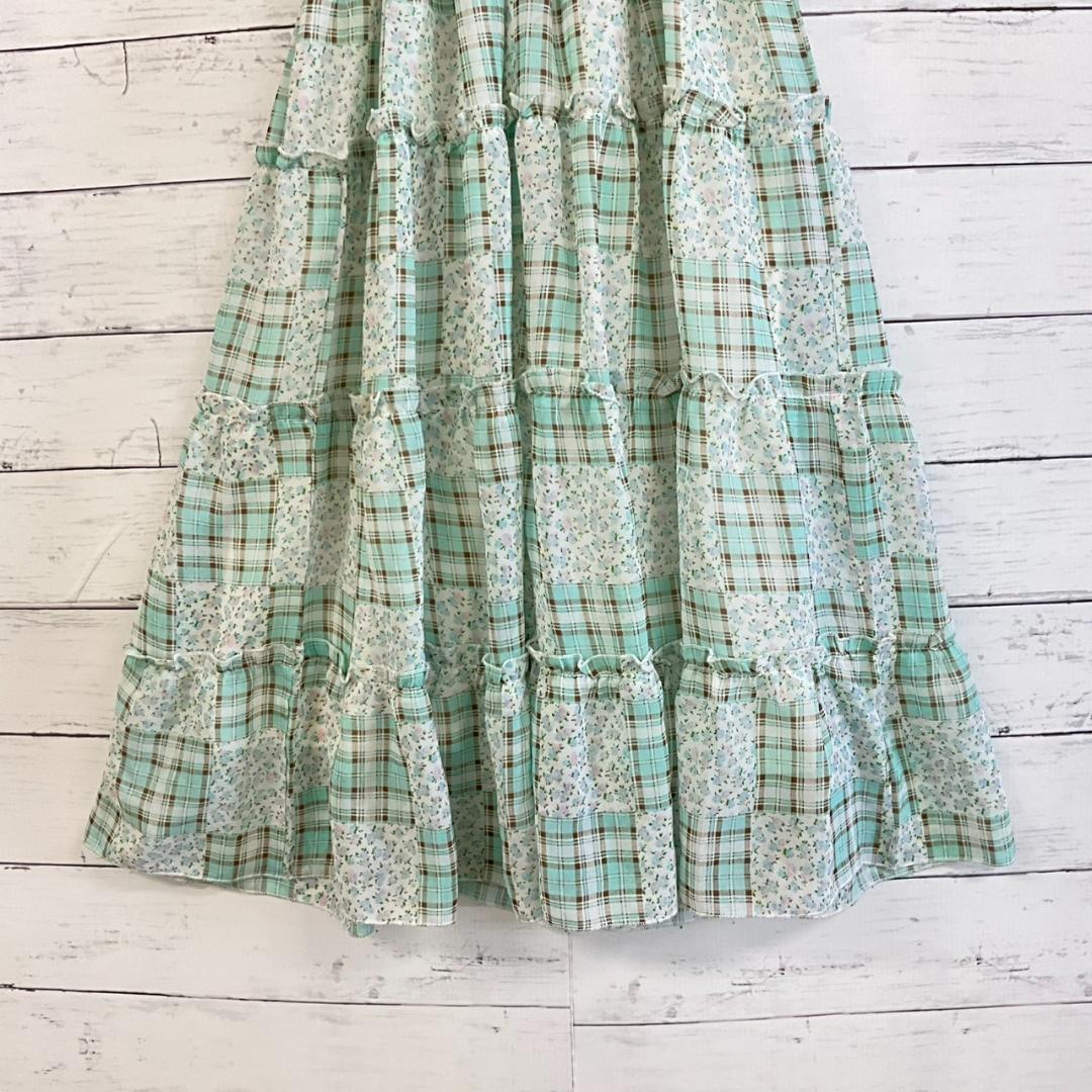 【アイテム】パッチワーク風チェック×小花柄 ワンピース
