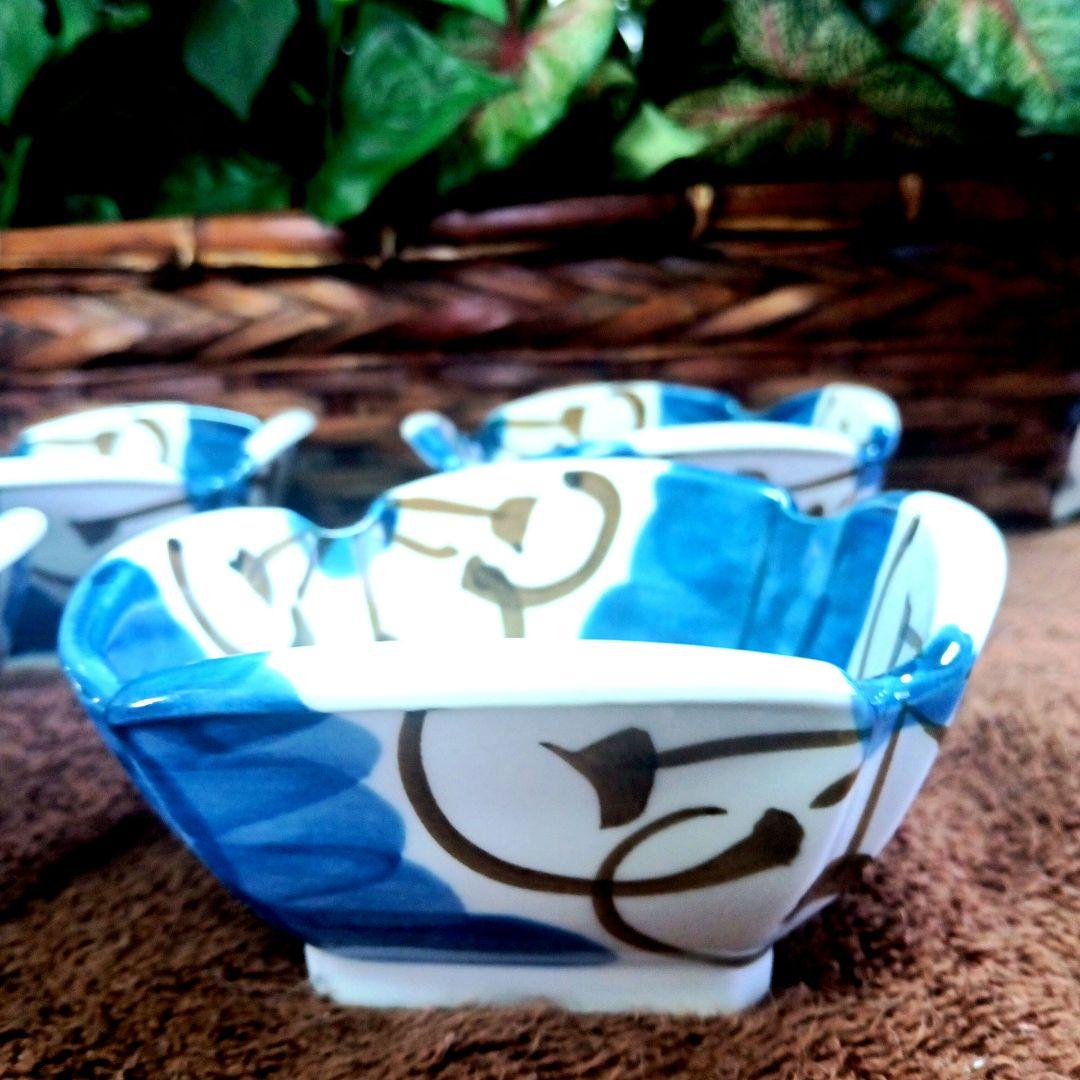 未使用品昭和レトロ有田焼の色鮮やかな染付小鉢セットです。