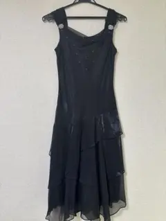 レア★SCALA ブラック ビーズ刺繍 ロングドレス パーティードレス