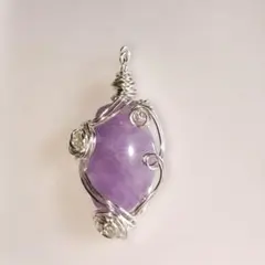花の形状のペンダントに紫色のストーンが施されたネックレス。