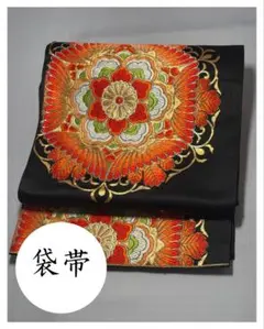 袋帯 丸に花柄 獅子 鳥 扇 亀甲 黒 金 茜色 朱色 紫 豪華 訪問着 182