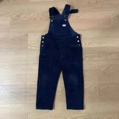 ストライプデザインのLee製オーバーオール、ボタン付きポケットが特徴。