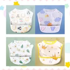 お食事エプロン 離乳食 防水 洗濯可 男の子向け4枚セットW7