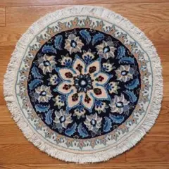 ペルシャ絨毯 丸 本物 手織り絨毯 ナイン シルク&ウール ペルシャラグ43cm