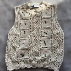 ストライプ柄のニットベスト、ボタン付きでスタイリッシュ。