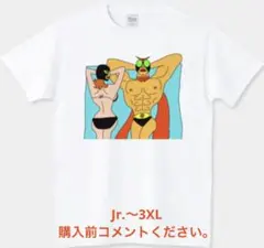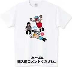 プロレスをテーマにしたブラックTシャツ、ユニークなプリントデザインが特徴。