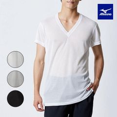 吸汗速乾性のあるMizunoのVネックTシャツ2枚組、ブラック。