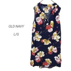 大人気✨OLD NAVY【XL】グリーン 花柄 ノースリーブワンピース 植物