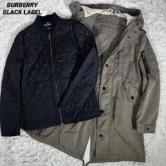 バーバリーブラックレーベル ノバチェック 裏ノバ キルティング 中綿 モッズコート ホースロゴ シャドーホース 刺繍 ラクーンファー