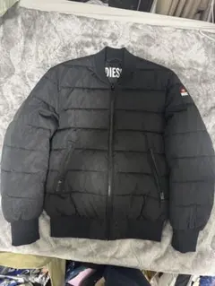ネイビーのDiesel Industry製MA-1ジャケット、ストライプのリブ付きでスタイリッシュ。
