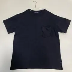 高級感あふれるブラックのピケコットンTシャツ、ポケット付きでスタイリッシュ。
