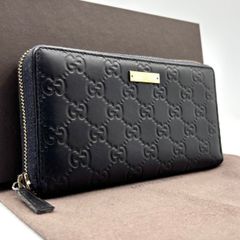【美品】GUCCI グッチ 長財布 レザー 黒 ブラック シボ革 折り財布