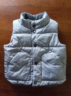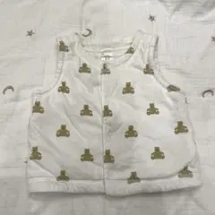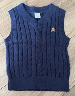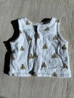 アイボリーのケーブル編みデザインで、ボタン付きのベビーベスト。