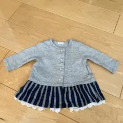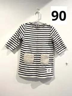 ネイビーの水玉模様でポケット付きのワンピース、サイズ80。