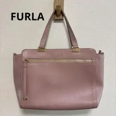 FURLA フルラ ハンドバッグ ピンク 濃桃色 軽量 薄手レザー 本革 柔らか