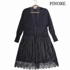 ピノーレPINORE 強燃糸 シルク混ウールカーディガン ブラウン