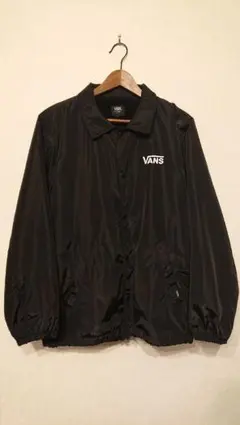 シンプルなデザインのブラックナイロンジャケット、VANSのMサイズ。