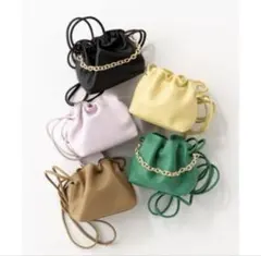 巾着バッグ ブラック レザーショルダーバッグ