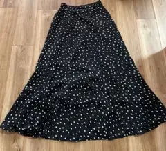 一度着用のみですが、折りたたんでしまっていたので、シワがあります。ネイビーとホワイトのチェック柄のフレアロングスカート、軽量な生地で動きやすいデザイン。