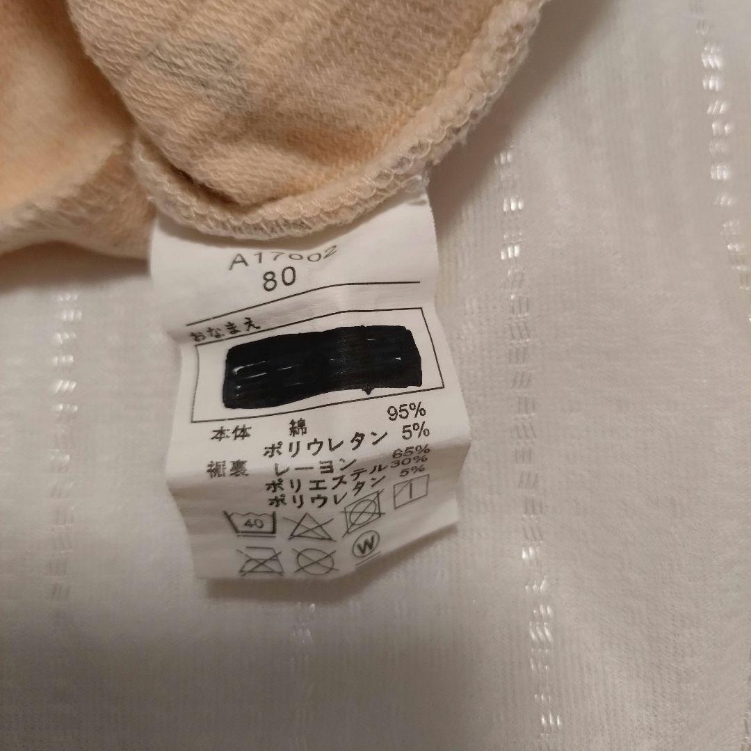 パンツ:左足膝下部分に小さな汚れありです(写真7枚目)。生地が柔らかくよく伸びて履かせやすいです。裾を折り返すとボーダー柄になります(写真9枚目)。