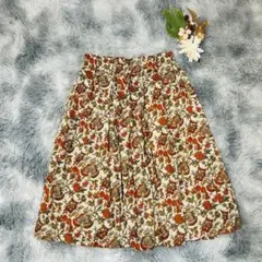 23区 ひざ丈スカート フレア 花柄 総柄 アシンメトリー 裏地付き