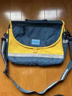 ネイビーとオレンジの配色が特徴的なKUMONのショルダーバッグ、内ポケット付きで収納力抜群。