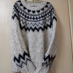 ノルディック柄 長袖ニットセーター ベージュ ユニクロ
