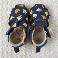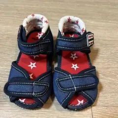 メッシュ素材のネイビーサンダル、15.0cmサイズ、マジックテープで着脱簡単。