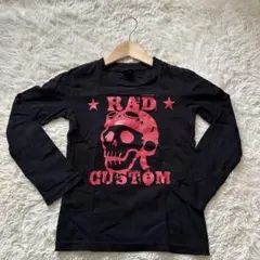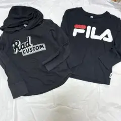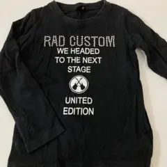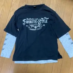 地球のグラフィックが特徴の黒い長袖カットソー、130cmサイズ、綿素材で快適。