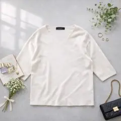 【美品】ジャスグリッティー マルチ金口リブニット 金ボタン セーター 七分袖 M
