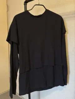 ネック付きのグレーのスウェットシャツ、快適な着心地です