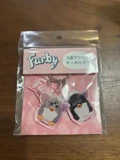 ファービーの可愛いキーホルダー、グレーとピンクのデザインで約5cmのサイズ。