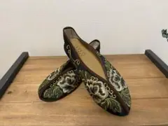 ライトブルーのフラットシューズ、シンプルで洗練されたデザイン。