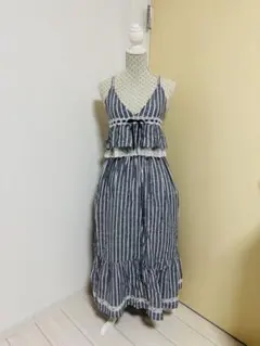 axes femme ネイビー ローズ ドット フラワー キャミワンピース