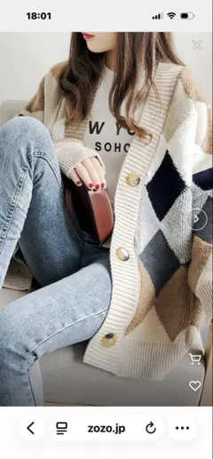 アミュレット アーガイル柄ニットカーディガン オーバーサイズ お洒落ボタン