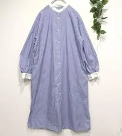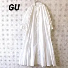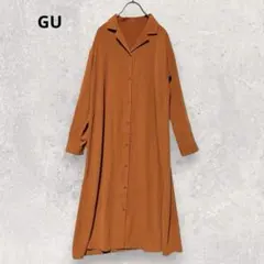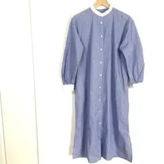 ジーユー GU バンドカラーワンピース 綿100% 7分袖 薄手 春秋 ロング丈