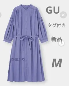 ジーユー GU バンドカラーワンピース 【M】7分袖 薄手 231-325005
