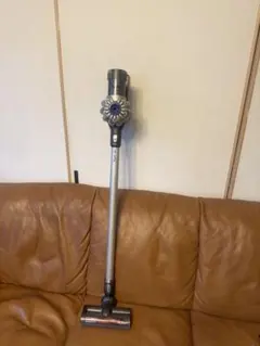 初期のダイソン掃除機。集塵ケースの蓋が外れています。養生テープでとめています。