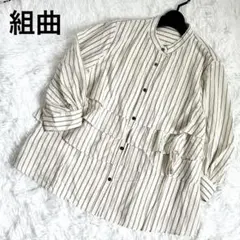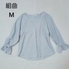 組曲 ブラウス くすみパープル 半袖 フリル ペプラム ショート丈 XS