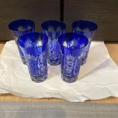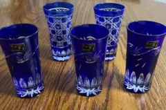 江戸切子 太目の切子 (切り子) グラス コースター5セット 竹籠ケース入り
