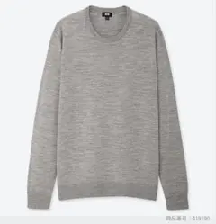ユニクロ クルーネック ニット グレー 薄手 綿100% メンズ