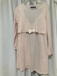 青と白のストライプデザインのボタン付きマタニティパジャマ、快適な100%コットン製。