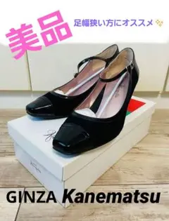 銀座かねまつ エナメルパンプス ポインテッドトゥ 24.5cm 黒