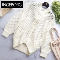 インゲボルグ 美品 フラワー 花モチーフ レース カーディガン アンサンブルL