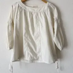 ☆earthmusic&ecologyグレー シフォン 五分袖 フリルブラウス