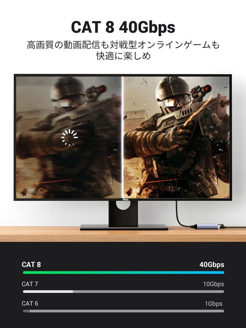LANケーブル CAT8 1M メッシュLANケーブル カテゴリー8 コネクタ