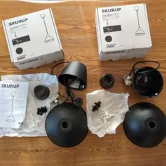 シンプルなデザインのブラックペンダントライト、金属とガラス製。