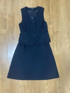 新品☆5号S♪グレンチェック×黒系♪ベストスーツ事務服スカート2種付〇G601