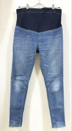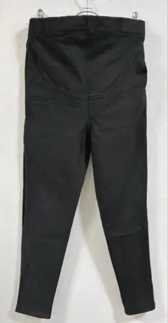 ウエストゴムのリブ素材の黒いマタニティパンツ。